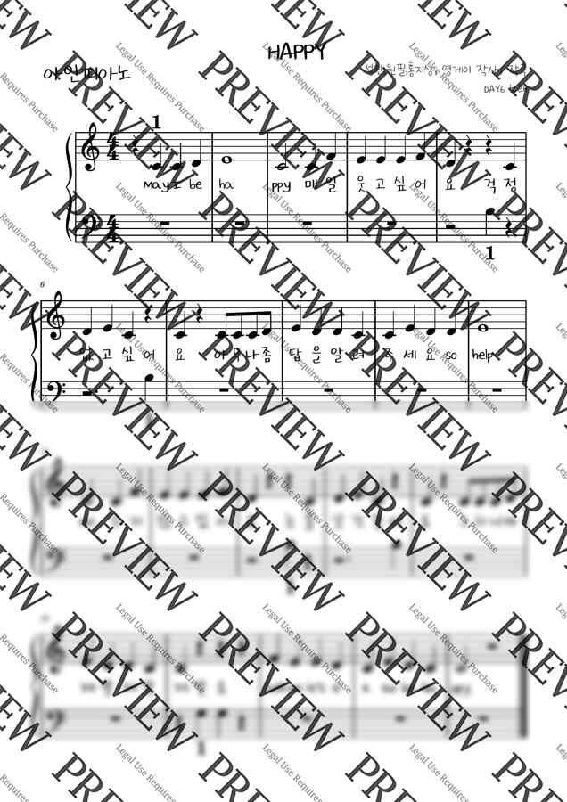 데이식스(DAY6) - HAPPY (해피) [하이라이트 부분] 1단계 꼬마손 악보 (유치부가능 쉬운악보)