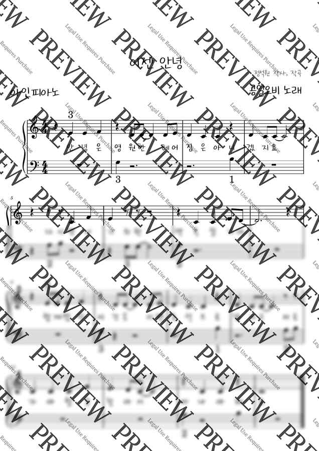 공일오비(015B) - 이젠 안녕 [하이라이트 부분] 꼬마손 버전 (유치부 가능) (매우 쉬운 악보) by 아인피아노