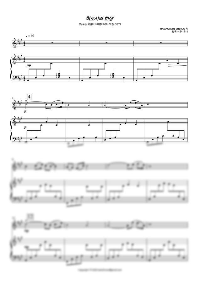 하마구치 시로 - [원키] 희로시의 회상(짱구는못말려 극장판, 어른제국의 역습 OST) (바이올린, 피아노) by 편곡가 유니유니