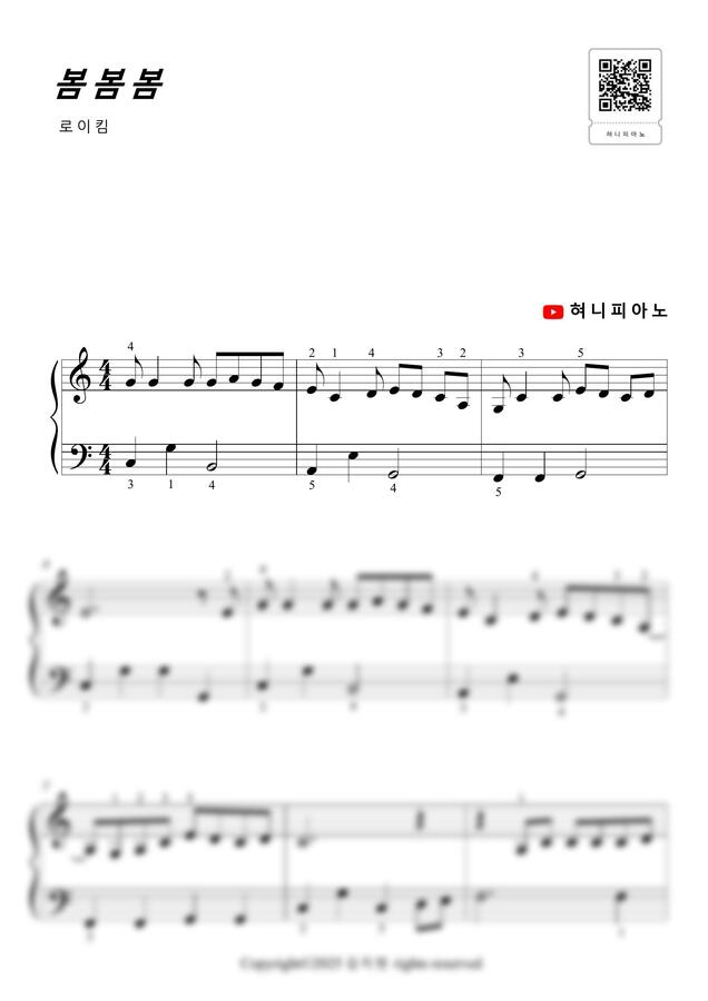 로이킴(Roy Kim) - 봄봄봄 (바이엘, 쉬운 악보) by 혀니피아노