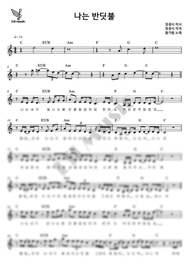 황가람 - 나는 반딧불 / 멜로디 악보입니다.