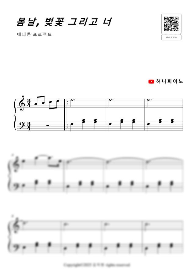 에피톤 프로젝트 - 봄날, 벚꽃 그리고 너 (쉬운 악보, 짧음) by 혀니피아노