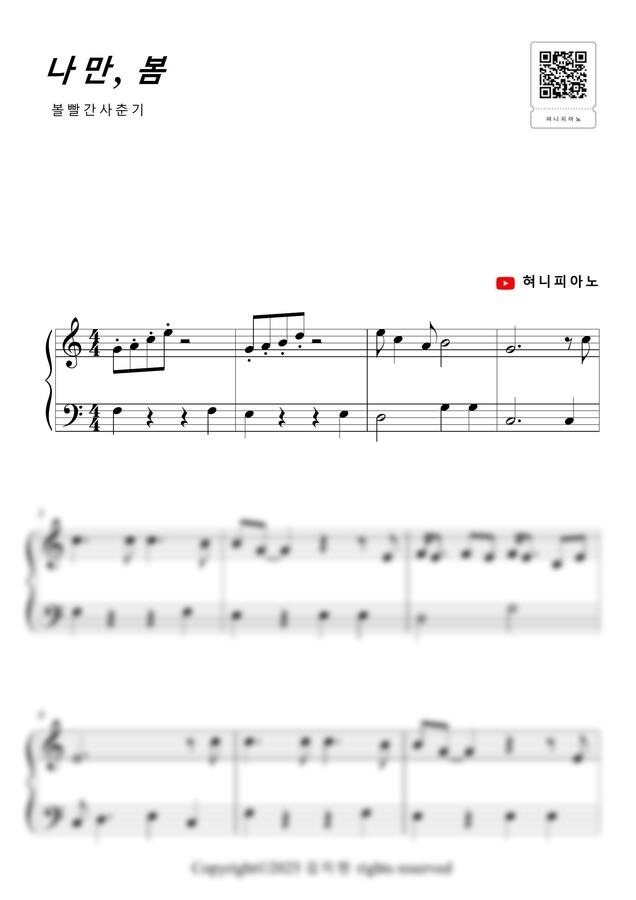 볼빨간사춘기 - 나만, 봄 (바이엘, 매우 쉬운) by 혀니피아노