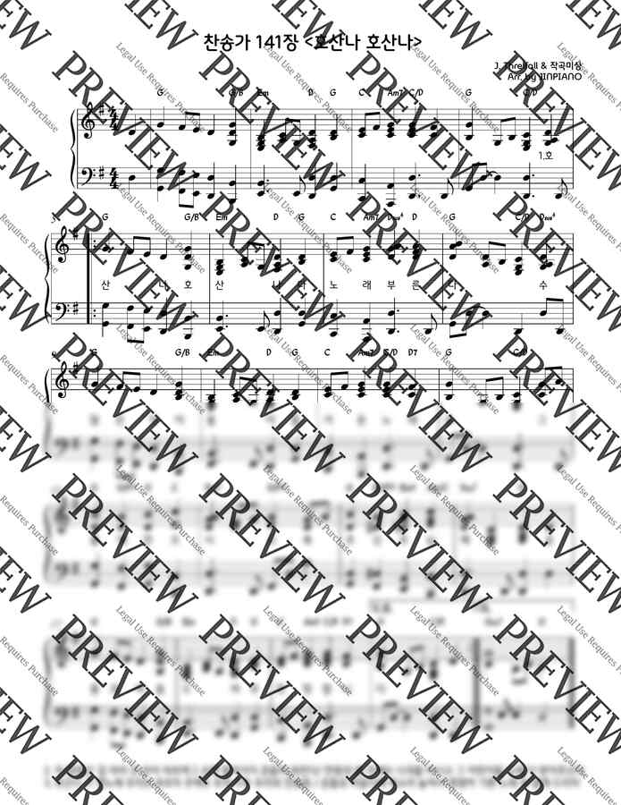 찬송가 141장 - 호산나 호산나(G key) (찬송가예배반주) by JINPIANO 1p 미리보기