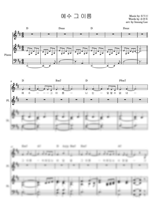 최덕신 작곡 - 예수 그 이름 (플룻+스트링_4성) 파트보 입니다.