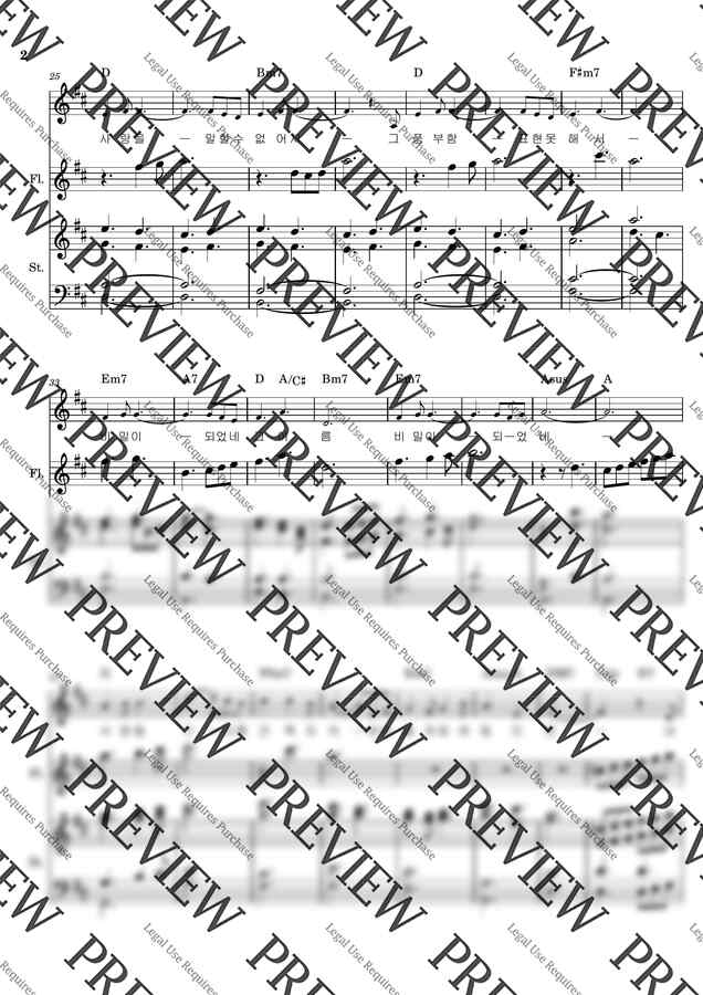 피아노+스트링+플룻 편곡이고 스트링은 신디사이저 세컨, 악기 실연주 모두 가능하도록 만들었습니다.