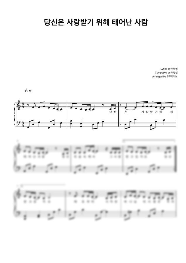 이민섭 - 당신은 사랑받기 위해 태어난 사람 (가사 첨부 / 쉬운 악보) by 뚜뚜피아노