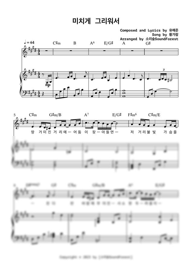 미치게 그리워서 피아노 악보 모음
