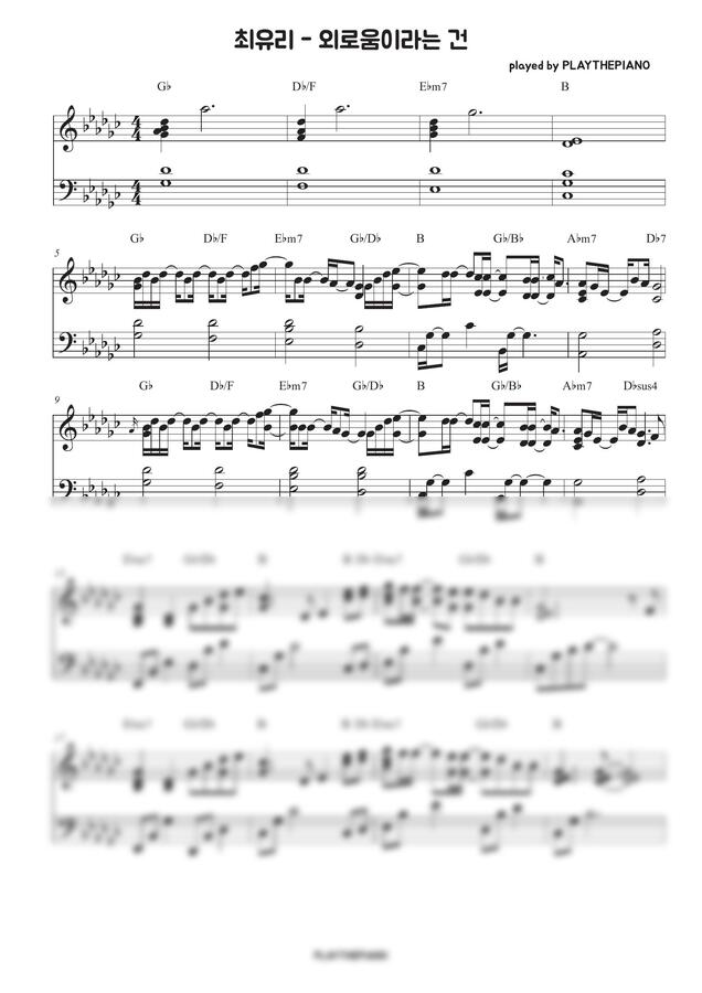최유리 - 외로움이라는 건 (원키-Gb, 쉬운버전- G key) by PLAYTHEPIANO/피아노그라피