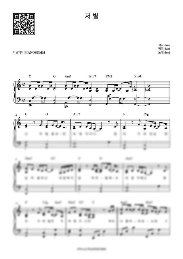 도리의 저 별 피아노 악보입니다