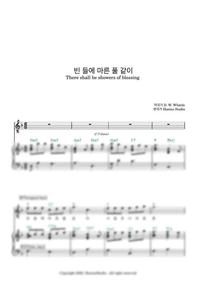 J.McGranahan - 빈 들에 마른 풀같이 F key (편곡악보/쉬운악보) by 헤인즈스튜디오1