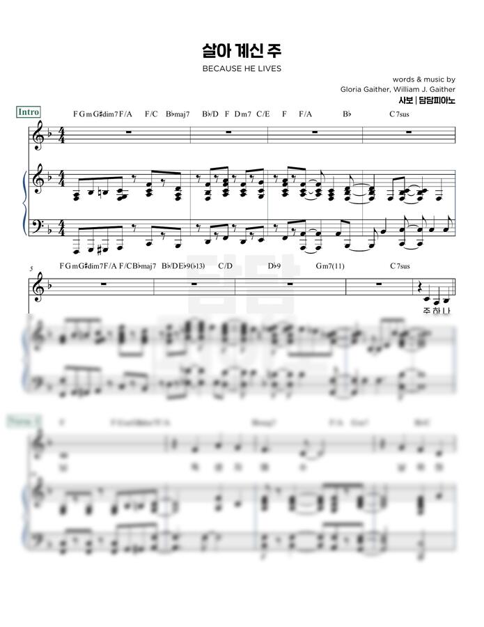 Gloria Gaither, William J. Gaither - 살아 계신 주 (F/G/A Key) by 담담피아노