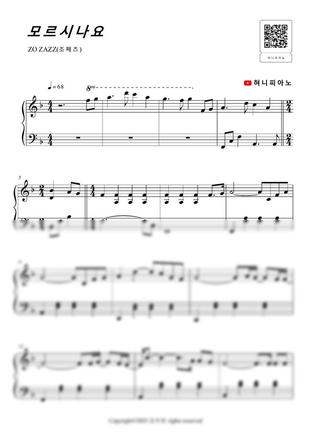 조째즈 - 모르시나요 (쉬운 악보, 1절) by 혀니피아노