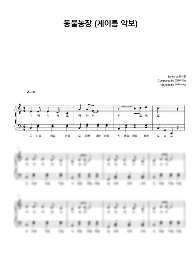동요 동물농장 (계이름 악보 / 쉬운 악보) by 뚜뚜피아노