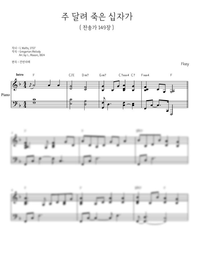 이번 곡은 찬송가 149장 - 주 달려 죽은 십자가 입니다.