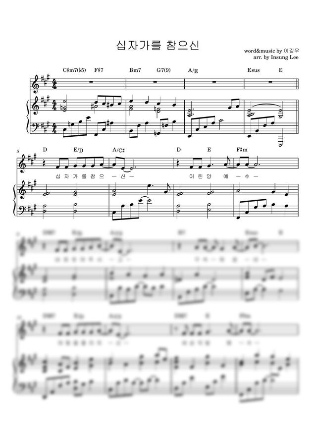 이길우 작사작곡 [십자가를 참으신 어린양 예수] A key 피아노반주 악보입니다.