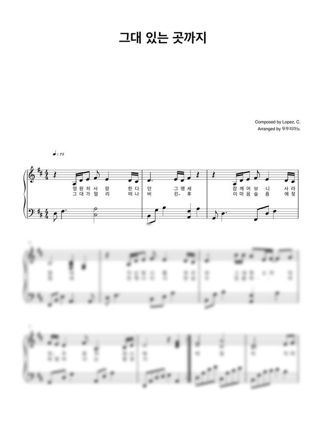 쌍투스 (영화 ‘하모니’ OST) - 그대 있는 곳까지 (Eres Tu) (가사 첨부 / 쉬운 악보) by 뚜뚜피아노
