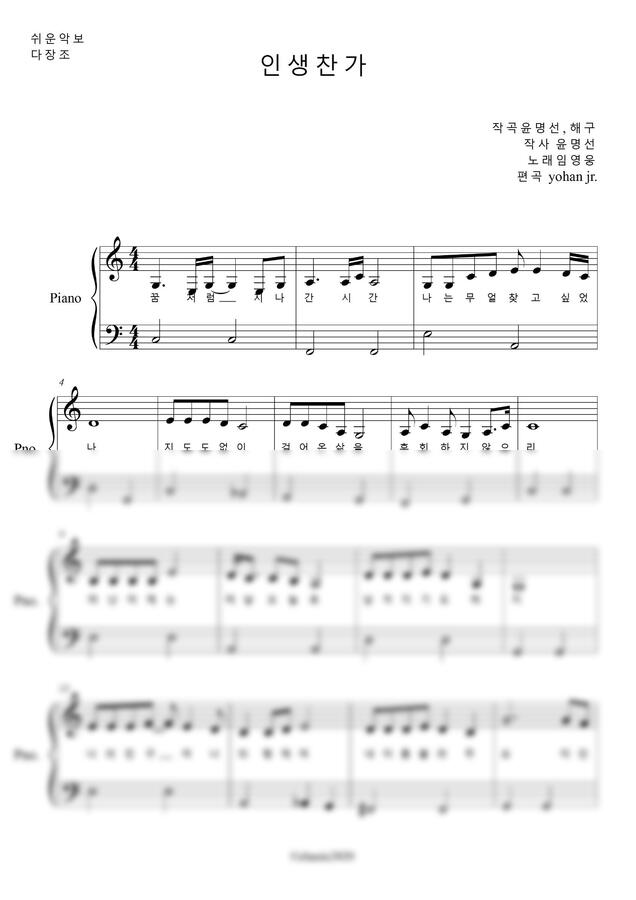 다장조와 원곡키 두가지로 만들었고 왼손을 단순화 한 쉬운악보입니다.