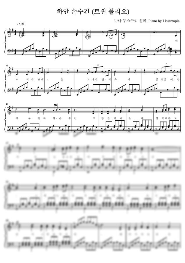 원곡은 세계적인 명성을 얻은 그리스 가수 나나 무스쿠리 (Nana Mouskouri)가 1967년에 발표한 Me T'Aspro Mou Mantili (하얀 면사포를 쓰고)입니다. 쎄시봉의 포크 가수 송창식과 윤형주가 결성한 통기타 듀오 트윈 폴리오가 1969년에 번안하여 불렀지요. 처음 송창식의 도입부는 송창식 특유의 박자 감각으로 원곡과 많이 다르지만, 그 후로는 원곡과 거의 동일하게 진행됩니다. 여기서는 트윈 폴리오의 번안곡을 기준으로 편곡하였습니다.