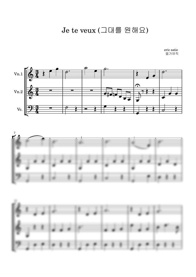 Eric Satie - Je Te Veux (그대를 원해요) 앙상블 총보+파트보 (쉬운 악보) by 엘가뮤직