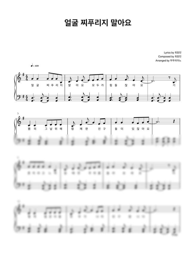 얼굴 찌푸리지 말아요 (가사 첨부 / normal ver.) by 뚜뚜피아노