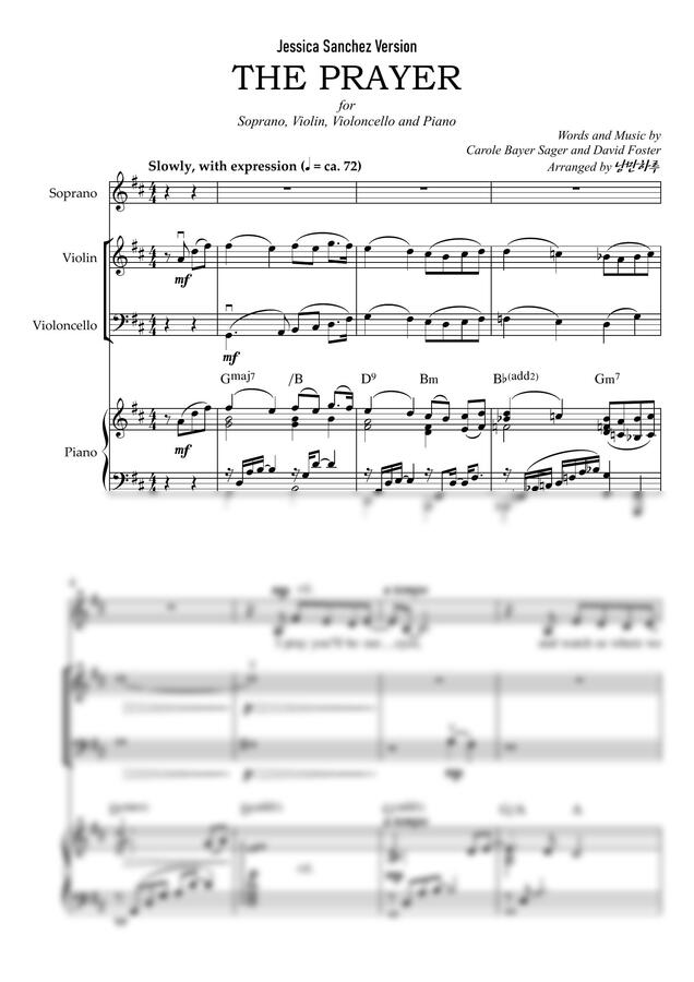 이번에 소개할 곡은, 'The Prayer for Soprano and Piano Trio' 입니다. 제시카 산체스 버전의 음원을 기준으로 소프라노 솔로와 앙상블 반주로 편곡하였습니다.