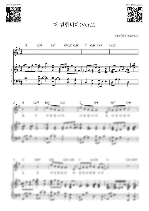 나가사와 타카후미 - 더 원합니다(Ver.2)_G Key (피아노 3단) by Samuel Park0