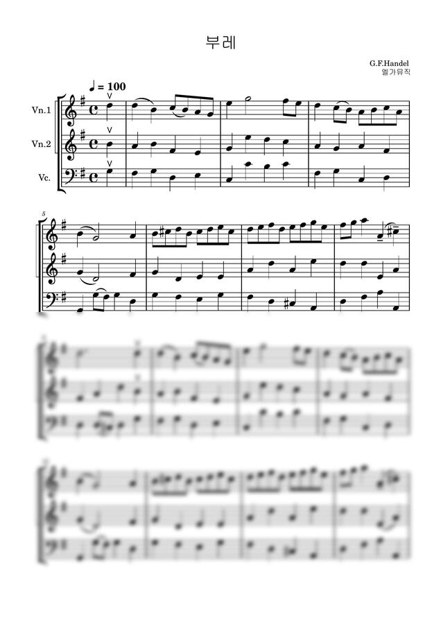 헨델 - 부레 현악3중주 앙상블 (총보+ 파트보) (스즈키 2권 연주회) by 엘가뮤직
