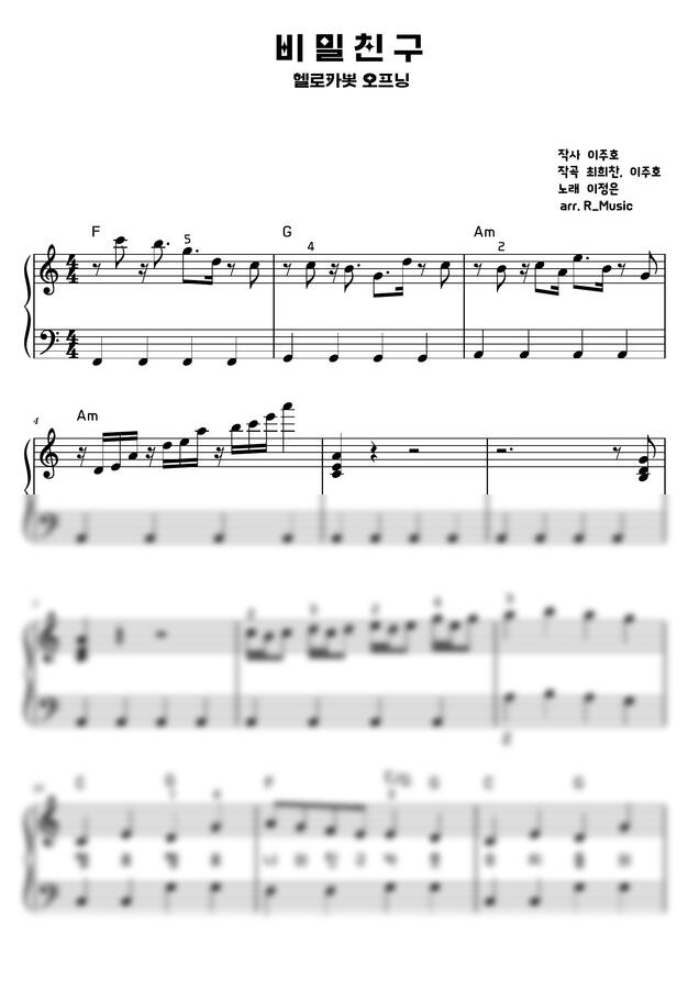 악보 > 최희찬 이주호 - 헬로카봇 ost 비밀친구_체르니 100 병행곡 (A Major) by R_Music