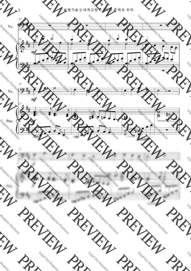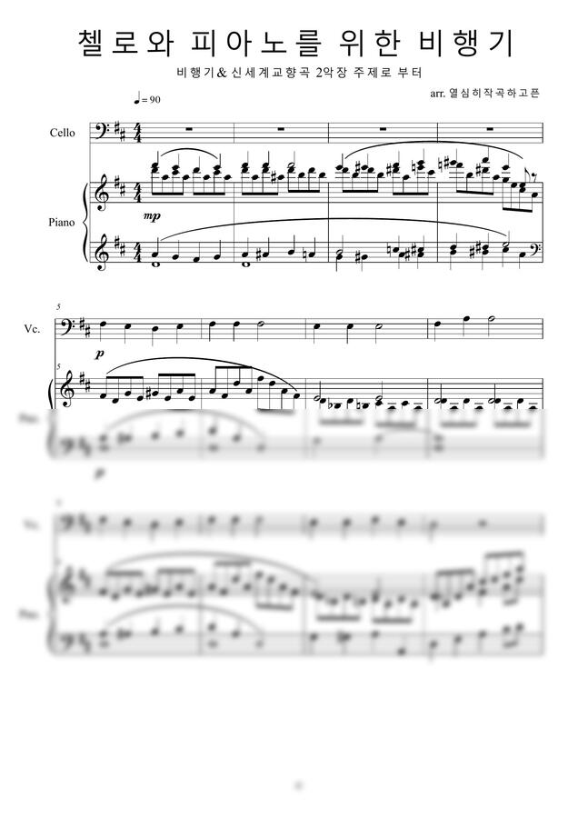 초보 첼리스트와 피아노를 위한 곡입니다. 동요 비행기와 드보르작의 교향곡 신세계로부터의 2악장 멜로디를 가지고 하나의 곡으로 편곡하였습니다. 피아노의 풍부한 음향으로 심플한 멜로디를 더욱 아름답게 해주는 곡입니다.
