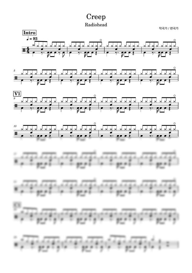 Radiohead - Creep (드럼악보) by Drummer KWI
