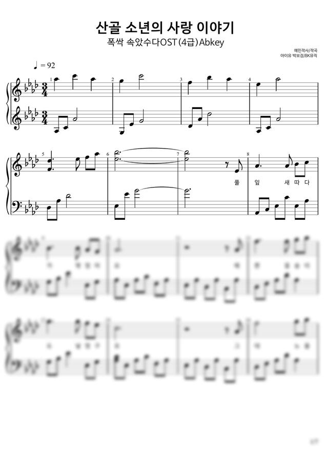 IU(아이유).박보검 - 산골 소년의 사랑이야기(폭싹 속았수다OST) Free Tempo (4급)AbKey