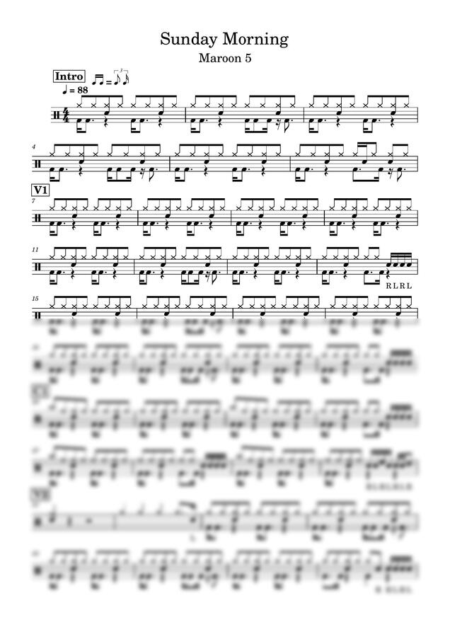 Maroon5 - Sunday Morning (드럼악보) by Drummer KWI