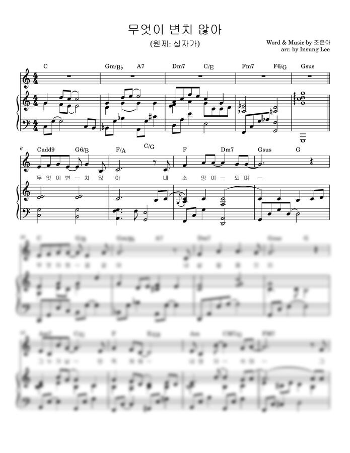 무엇이 변치 않아 (원제: 십자가) 피아노 반주 악보 C key 입니다.