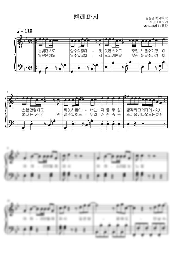 도시아이들 - 텔레파시 (쉬운악보) by 판다_pf