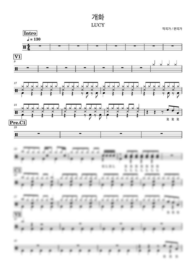 루시 - 개화 (드럼악보/원곡X) by Drummer KWI