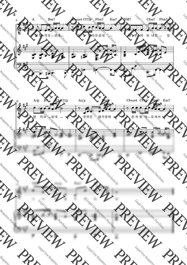 A키로 전조한 멜로디 + 가사 + 코드 + 피아노반주 ( 3단 악보에용 )
