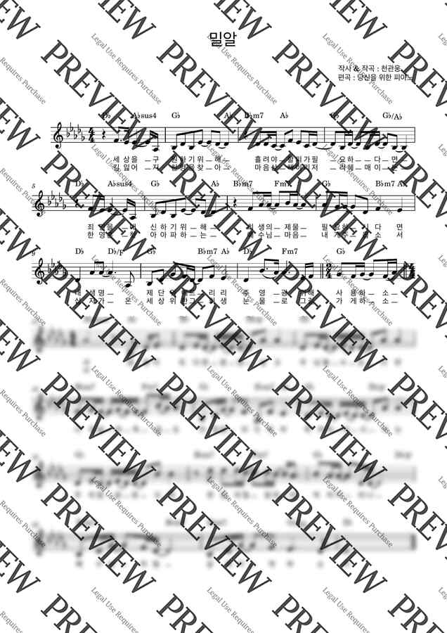 천관웅 - 밀알 (Db키,가사,코드) by 당신을위한피아노