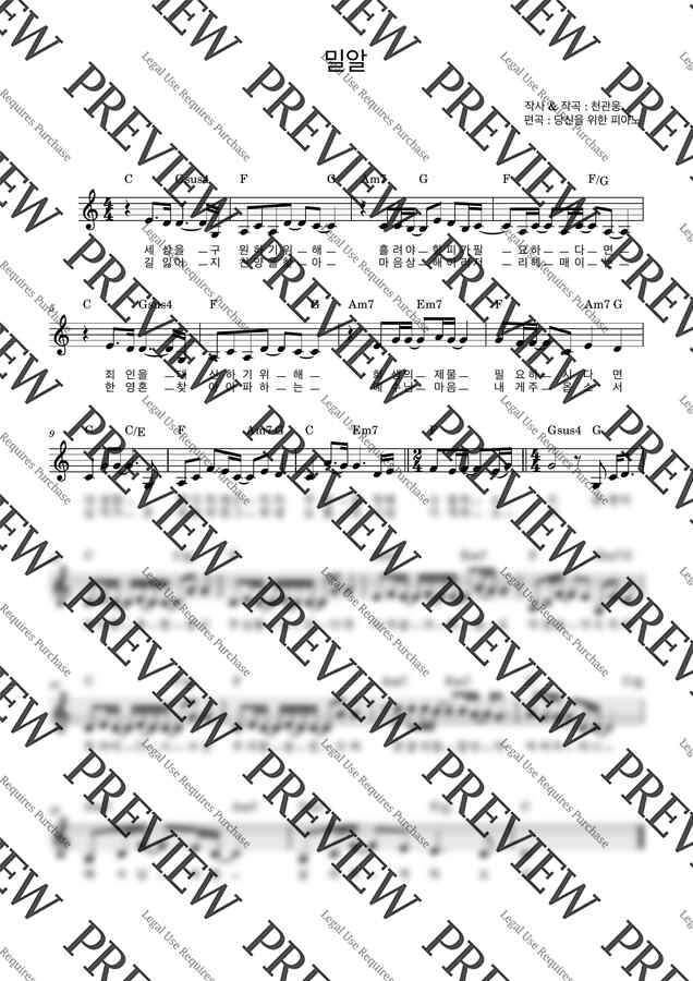 천관웅 - 밀알 (C키,가사,코드) by 당신을위한피아노