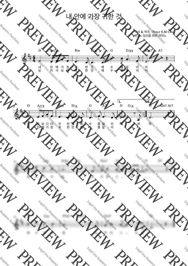 Peter S.M Cho - 내 안에 가장 귀한 것 (D키,가사,코드) by 당신을위한피아노