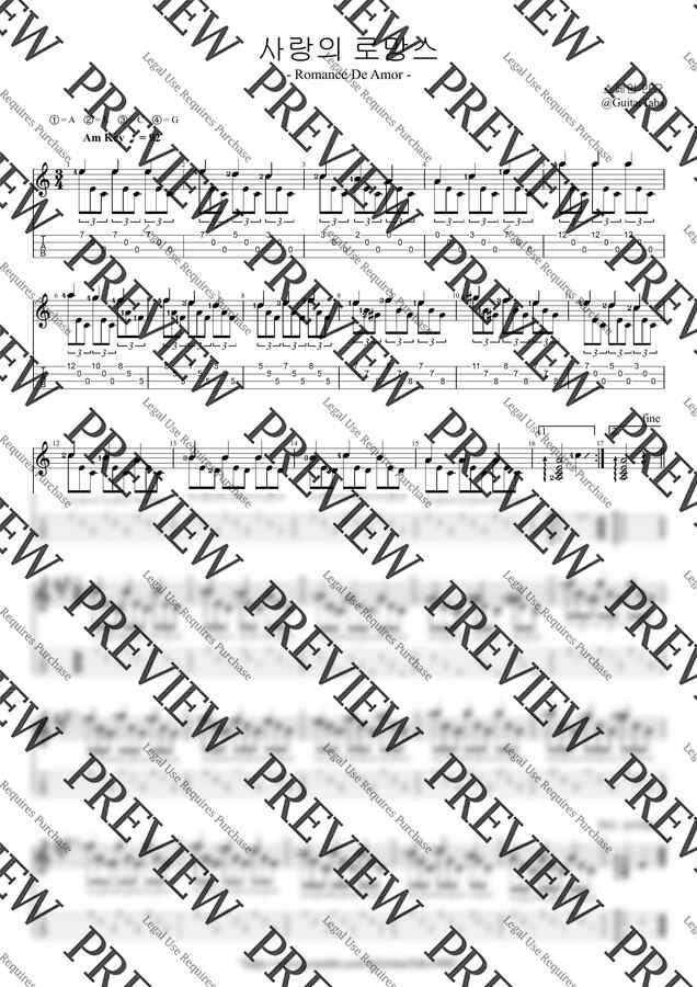 Am Key / 1p / 1단 / 5선(Staff) / 타브(TAB) / 운지(Fingering)