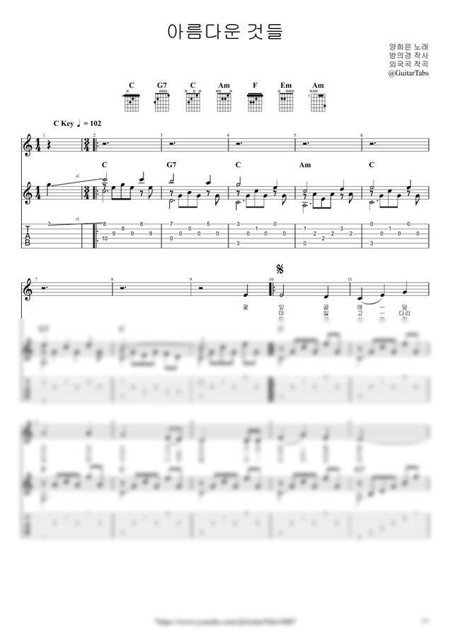 C Key / 3p / 2단(노래+반주) / 5선(Staff) / 타브(TAB) / 가사(Lyrics) / 코드(Chords)