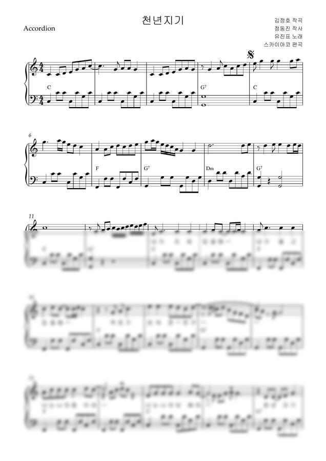 유진표 - 천년지기(아코디언악보, 난이도 중상, C key) by 스카이아코
