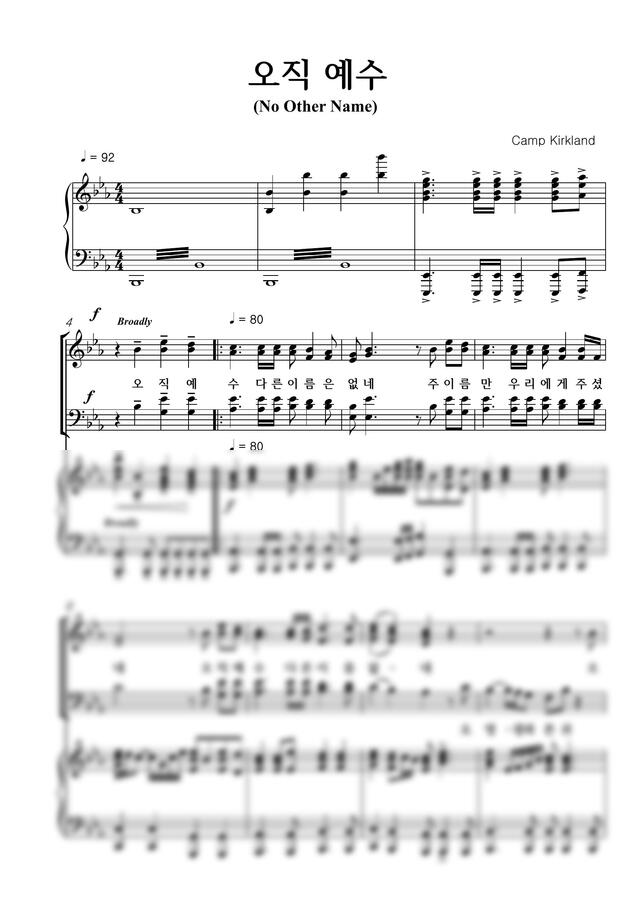 Camp Kirkland 작곡 '오직 예수' 4부 합창 악보입니다.