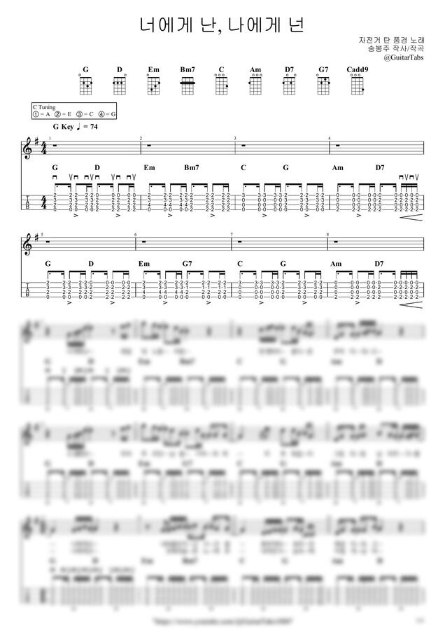 G Key / 3p / 2단(노래+반주) / 5선(Staff) / 타브(TAB) / 가사(Lyrics) / 코드(Chords)