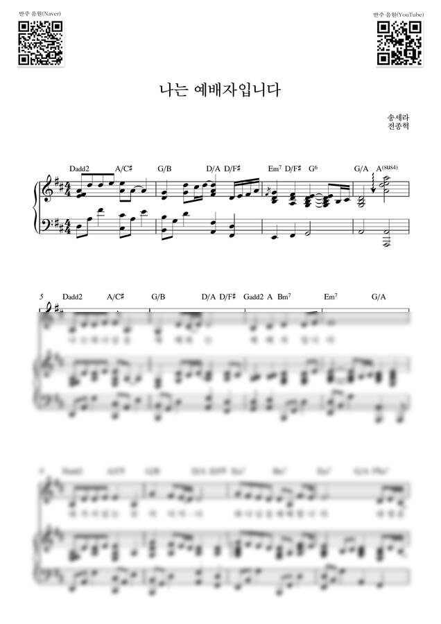 전종혁, 송세라 - 나는 예배자입니다_D Key (피아노 3단) by Samuel Park0