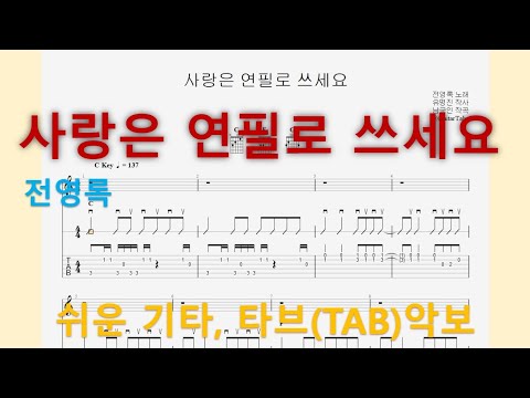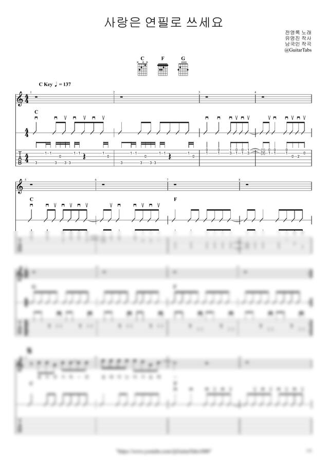 C Key / 4p / 3단(노래+반주+솔로) / 5선(Staff) / 슬래쉬(Slash) / 타브(TAB) / 가사(Lyrics) / 코드(Chords)