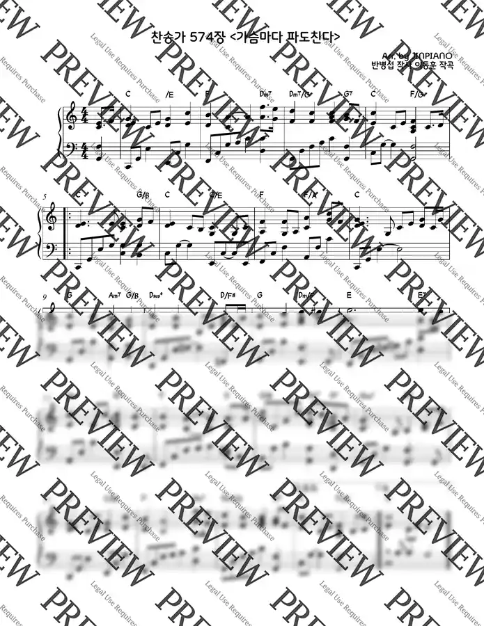 찬송가 574장 - 가슴마다 파도친다(원키 C key) (찬송가반주) by JINPIANO
