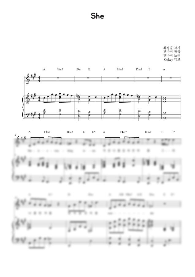잔나비 - She (반주악보, 3단악보) by Onkey