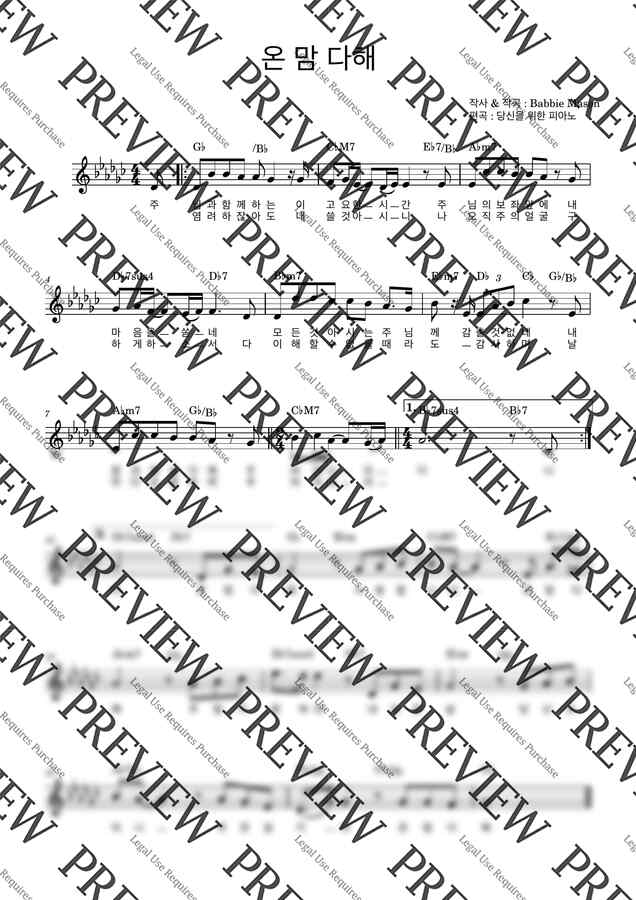 Babbie Mason의 "온 맘 다해" 멜로디 악보에용~!